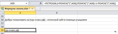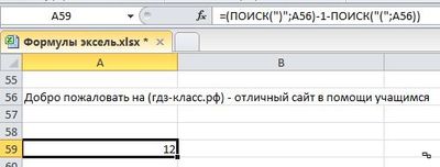 Здесь 1+ПОИСК("(";A56); необходимо прибавить 1 т.к. символ "(" нам не нужен.